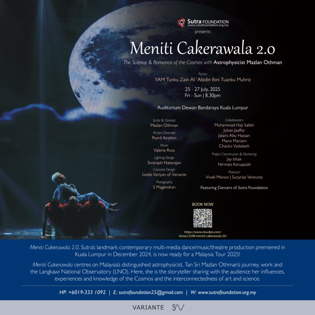 Meniti Cakerawala 2.0, Sutra’s landmark multi-media dance/music/theatre production will be re-staged in KUALA LUMPUR! For those who missed its Premiere in December 2024, here’s your chance to witness the magic live on stage.